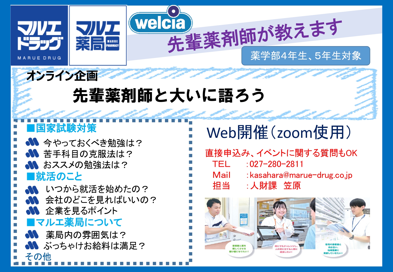 マルエの薬剤師がどのような仕事しているのか、どんな雰囲気なのか是非見に来てください。